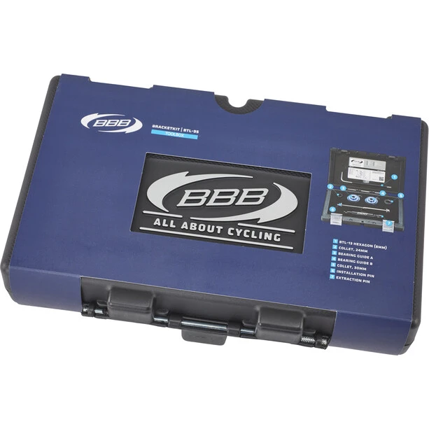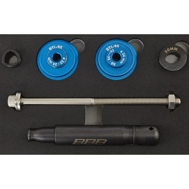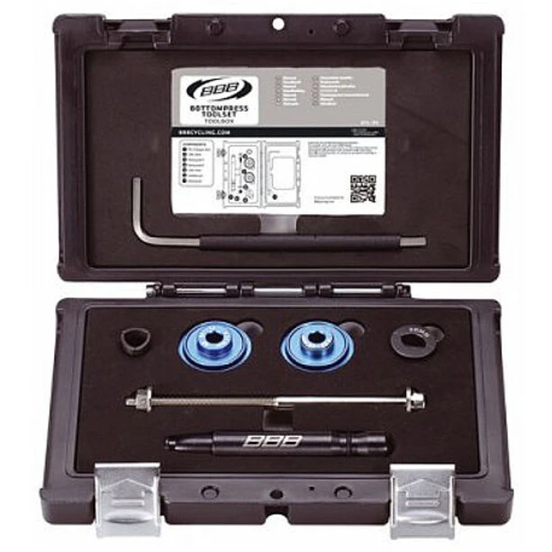 Set with all necessary tools for dismantling and installing a press fit bottom bracket.
