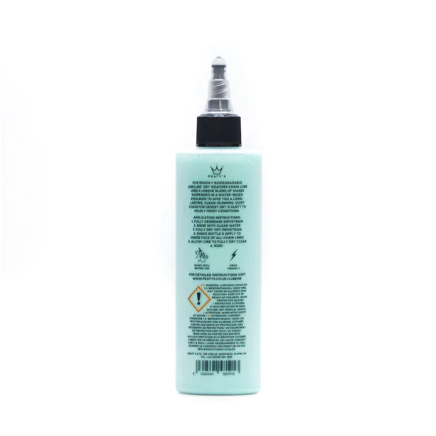 The readily biodegradable chain lubricant LinkLube Dry Weather contains a unique combination of waxes dissolved in a water-based emulsion to provide a long lasting, clean running, quiet chain for dry and dusty to slightly humid conditions.