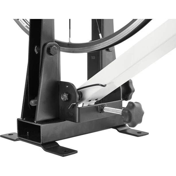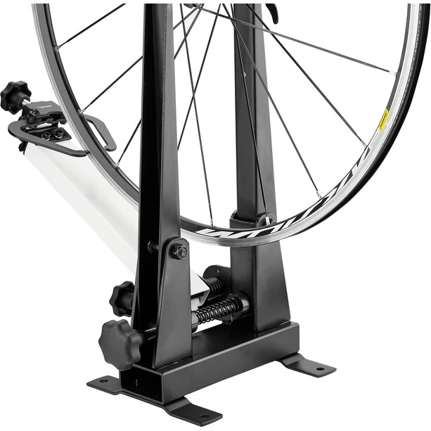 This solid truing stand is a precision tool for the home and professional workshop, with which you can repair side and height impacts. Of course, it offers adjustment possibilities for different wheel types, so you can keep all your bikes in shape with it.