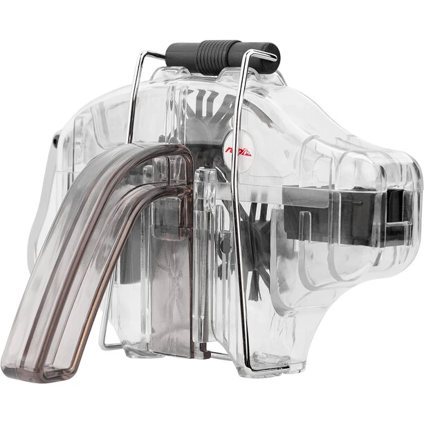 Your chain will last much longer if it’s cleaned and cared for on a regular basis, which is unfortunately not so easy if you clean it with a rag. With this pig-shaped chain cleaner you also get the dirt out of the gaps in the chain links – just fill it with degreaser, pull the chain through a few times and it’ll shine like new again! Please make sure to lubricate the chain again afterwards, because the chain pig cleans very thoroughly and removes the last remnants of previous lubrication.