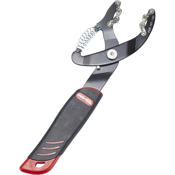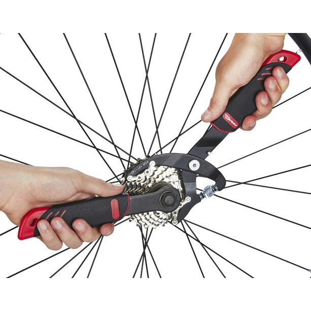 Only one hand is required to operate the pinion pickup, which allows a high torque if the lock ring of the cassette is a little tighter. With the Red Cycling Products PRO pinion pickup, cassettes can be changed from a 5-speed to an 11-speed configuration.
