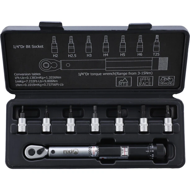 Red Cycling Products PRO Torque Wrench 1/4″ 3-15Nm Including Bits