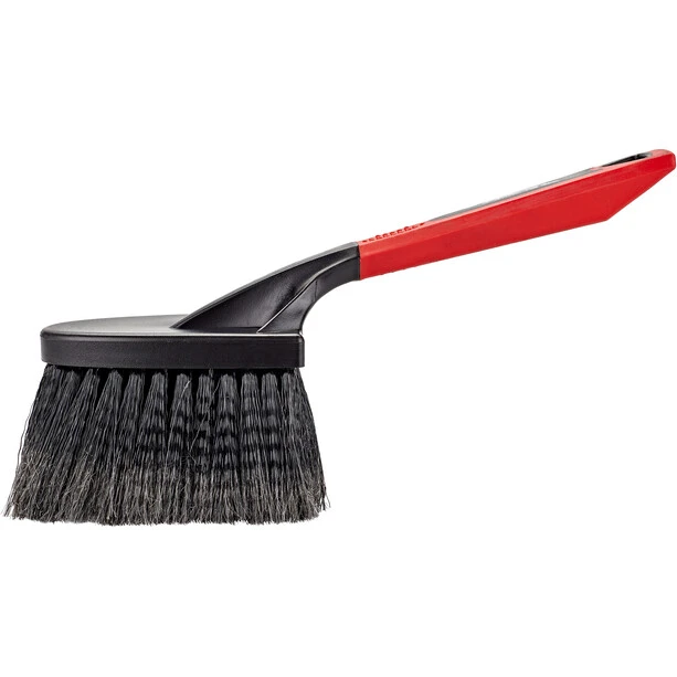 This soft brush does the fine work when cleaning your bike. it’s gentle on the paint with its soft bristles and has a long reach due to the large brush head. The brush is suitable for the frame, fork and other sensitive parts. A rubberized handle provides a good grip.