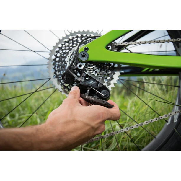The POCKET TOOL Medium fits with the flat design ideally in the saddlebag. In addition to 9 keys, it also allows adjustment work on spokes and chain by means of spoke tensioner and chain riveter. The side parts consist of removable tire levers.