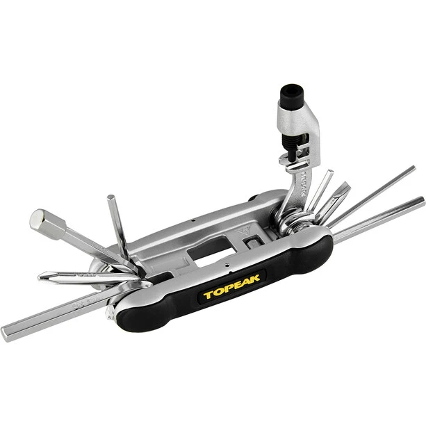 The multi-award winning mini tool with 18 functions, CrMo chain riveter and two modular tyre levers integrated in the housing.