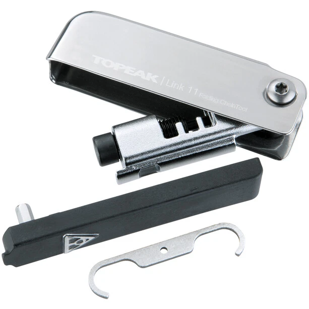 Compact, foldable chain tool for most multi-speed chains up to 11-speed. The built-in chain hook holds the chain in place while installing.