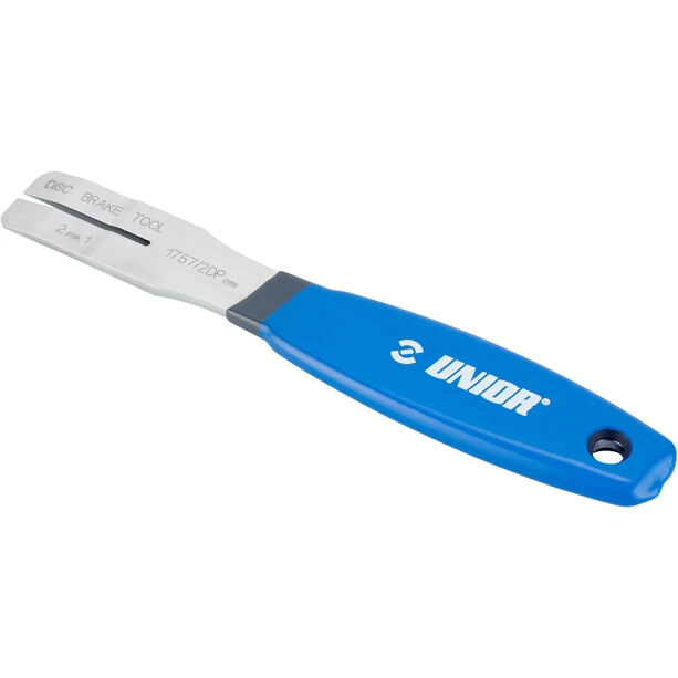 Das einzigartige Design des Werkzeugs bietet zwei Funktionen an: eine Funktion zur Kompression der Bremskolben und eine zur Einstellung der Bremsscheiben. Bei der Einstellung der Bremsscheiben einfach die Öffnung im Werkzeug verwenden um Verletzungen an den Fingern zu vermeiden. Das gespitzte Metallteil ist so ausgelegt, dass es zwischen den Bremsscheiben in der Bremsbacke gleitet, wodurch die Bremskolben einfach zurück in die Backen gedrückt werden. Das 2 in 1 Scheibenbrems-Werkzeug ist ein unverzichtbares Ausrüstungsstück und findet seinen Platz in jeder Werkstatt und ist auch für unterwegs geeignet.