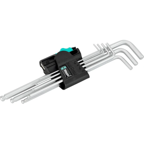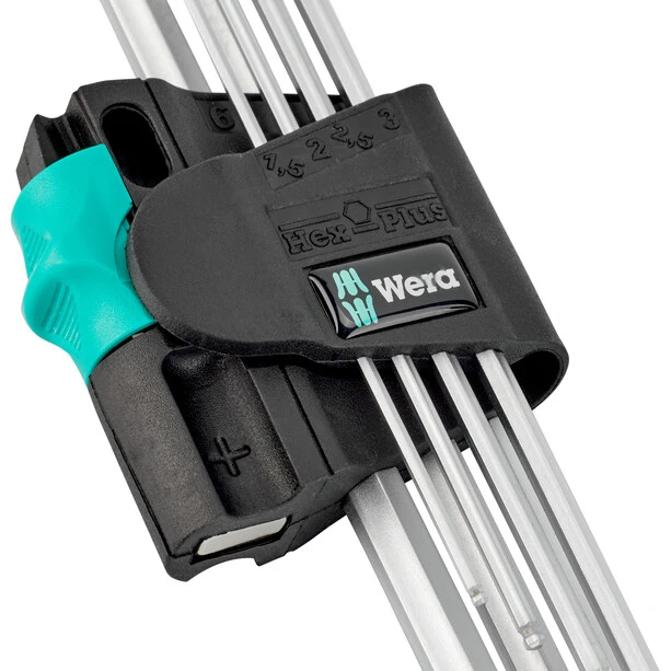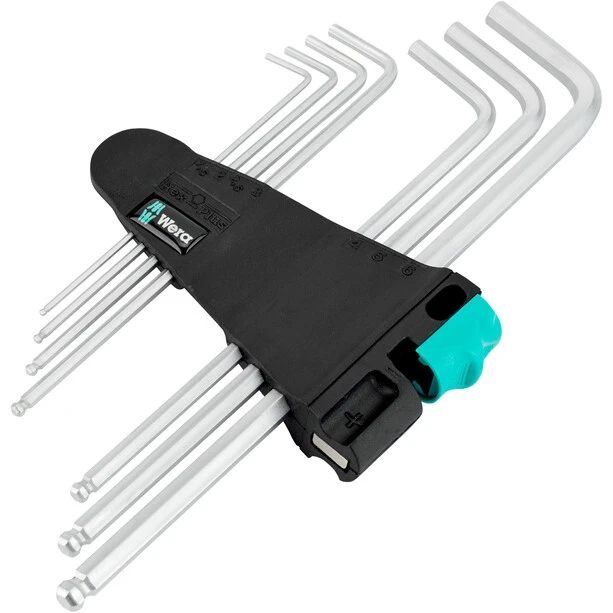 High-quality angle wrench set for hexagon socket screws in a practical clip with magnetizer. Angle spanner with Hex-Plus profile: Offers larger contact surfaces in the screw head. The notch effect is reduced to a minimum, the destruction of the screw head is almost eliminated. The ball on the long leg allows safe working even in difficult installation positions. The carefully chrome-plated frame guarantees high corrosion protection. Lasered and therefore abrasion-resistant size markings on the angled wrenches for quick access. It often helps if the screw is “held” by the angle spanner by magnetic force. The Wera clips with magnetizing device make this advantage possible in no time at all.